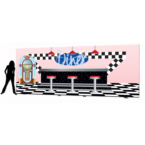 Set the scene for your 1950s or Diner themed event with this classic 6m American Diner backdrop. A quick and easy way to transform your venue, this amazing prop also acts as a brilliant photo opportunity.