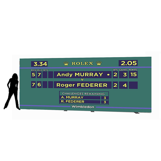 Tennis, strawberries and rain – it must be British summertime! It’ll never end in failure as our scoreboard doesn’t move, so for British fans and hopefuls alike, the dream lives on with this quirky and typically British backdrop.