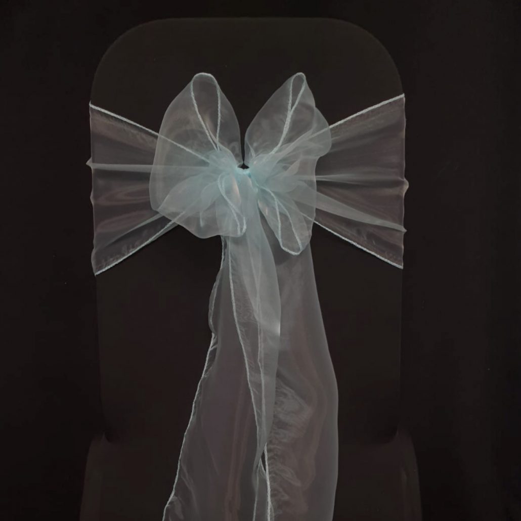 You are here: Home1 / Catalogue2 / Table Linen3 / Organza Chair Sashes4 / Chair Sash – Organza – Aqua