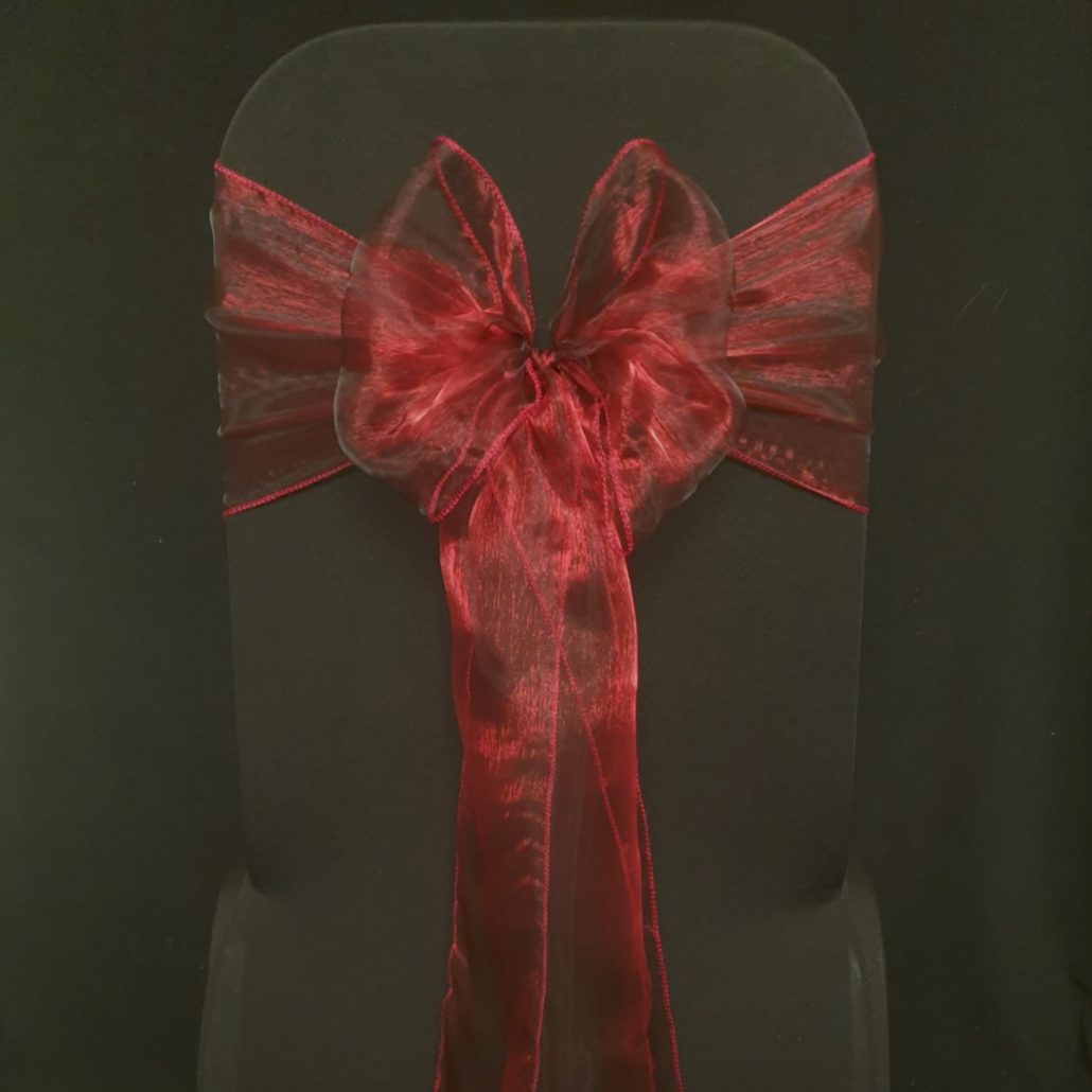 You are here: Home1 / Catalogue2 / Table Linen3 / Organza Chair Sashes4 / Chair Sash – Organza – Burgundy