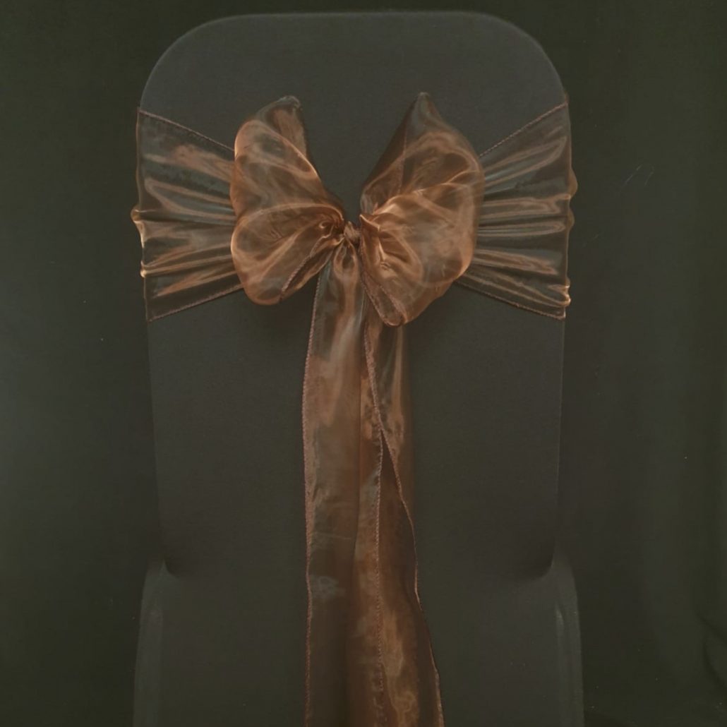 You are here: Home1 / Catalogue2 / Table Linen3 / Organza Chair Sashes4 / Chair Sash – Organza – Chocolate Brown