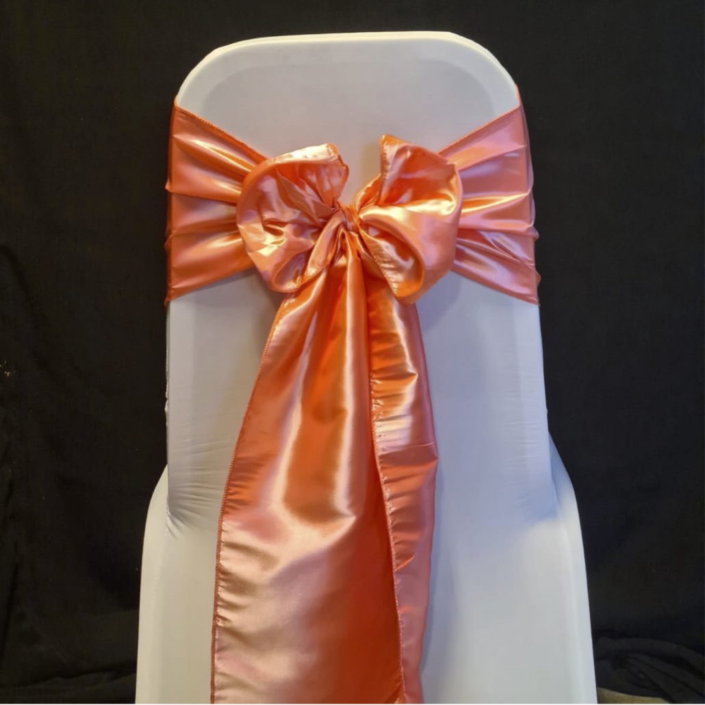 You are here: Home1 / Catalogue2 / Table Linen3 / Taffeta Chair Sashes4 / Chair Sash – Taffeta – Coral