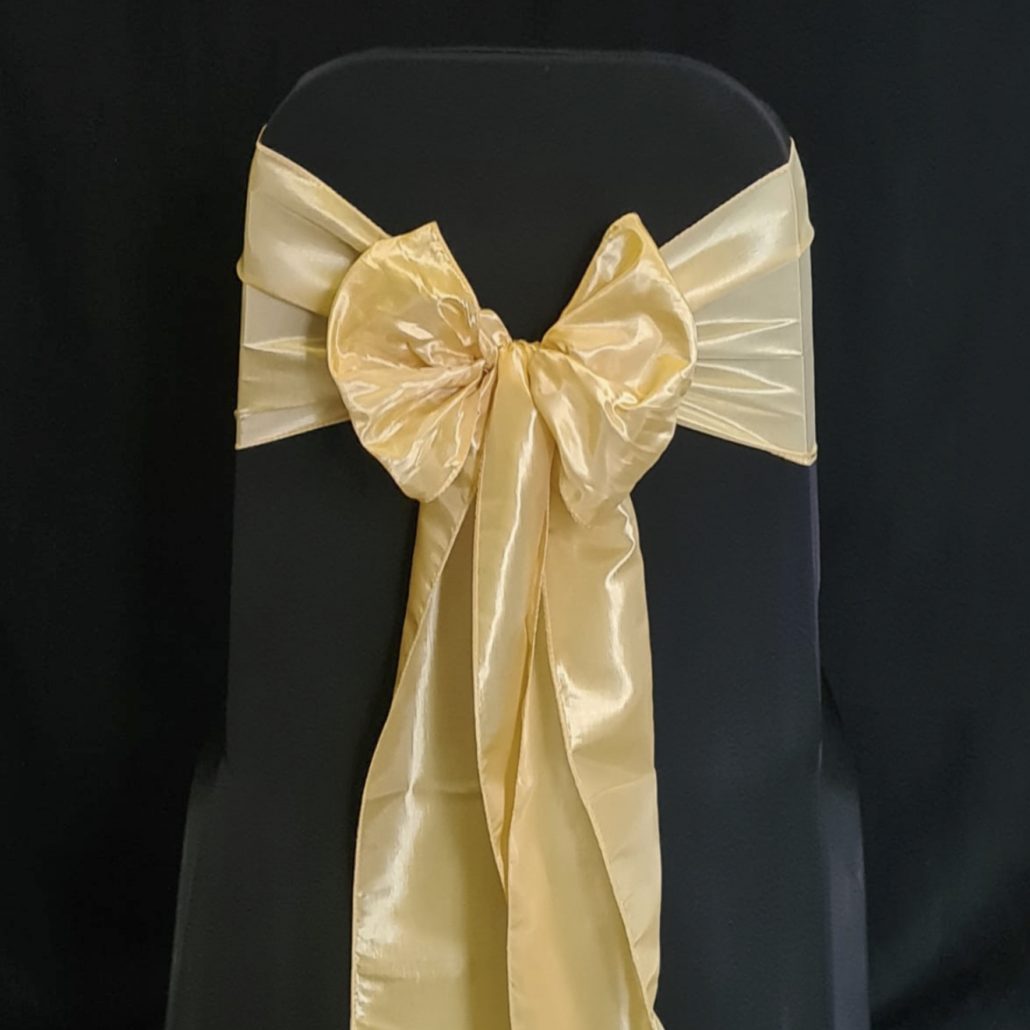 You are here: Home1 / Catalogue2 / Table Linen3 / Taffeta Chair Sashes4 / Chair Sash – Taffeta – Gold