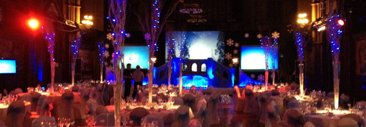 iCatching events completed a stunning Winter Wonderland stage set and room transformation for Click AV for the Co-op Banks Manchester awards at the Manchester Town Hall.