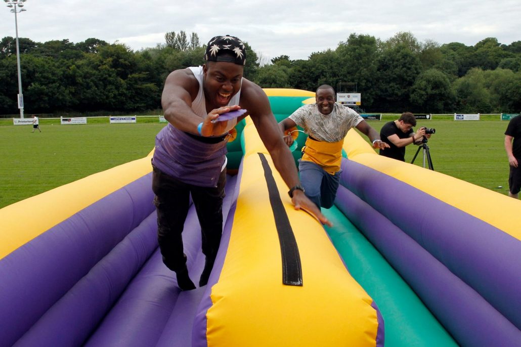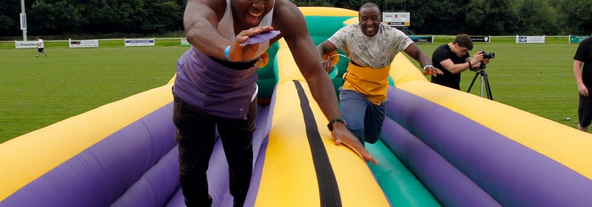 Inflatable penalty shoot out, inflatable twister, adult bouncy castle, bungee run, gladiator duel, sumo suits, hook-a-duck, coconut shy, candy floss, popcorn, DJ, giant Jenga, giant connect 4 and giant Kerplunk. Not forgetting the super fun adult sports day.