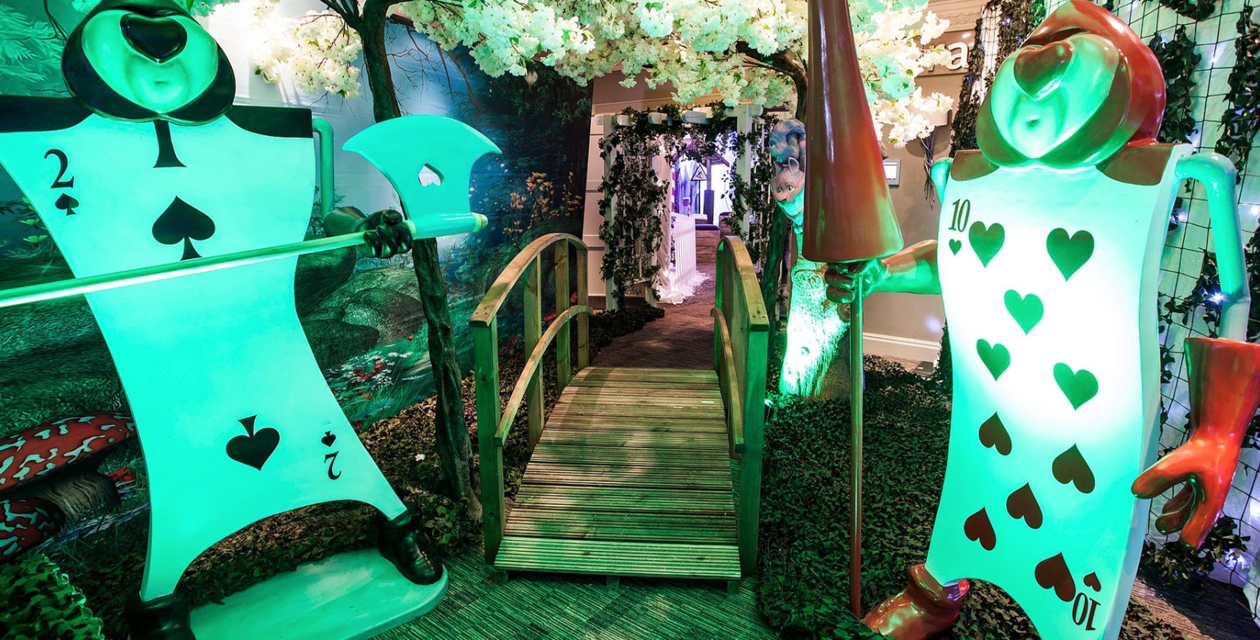 Lead your guests on a merry dance through our themed entrance arch, following crazy signs that read ‘that way, that way’ or ‘up and down’, until they reach their destination, a fantastical land that we’ve created just for you.