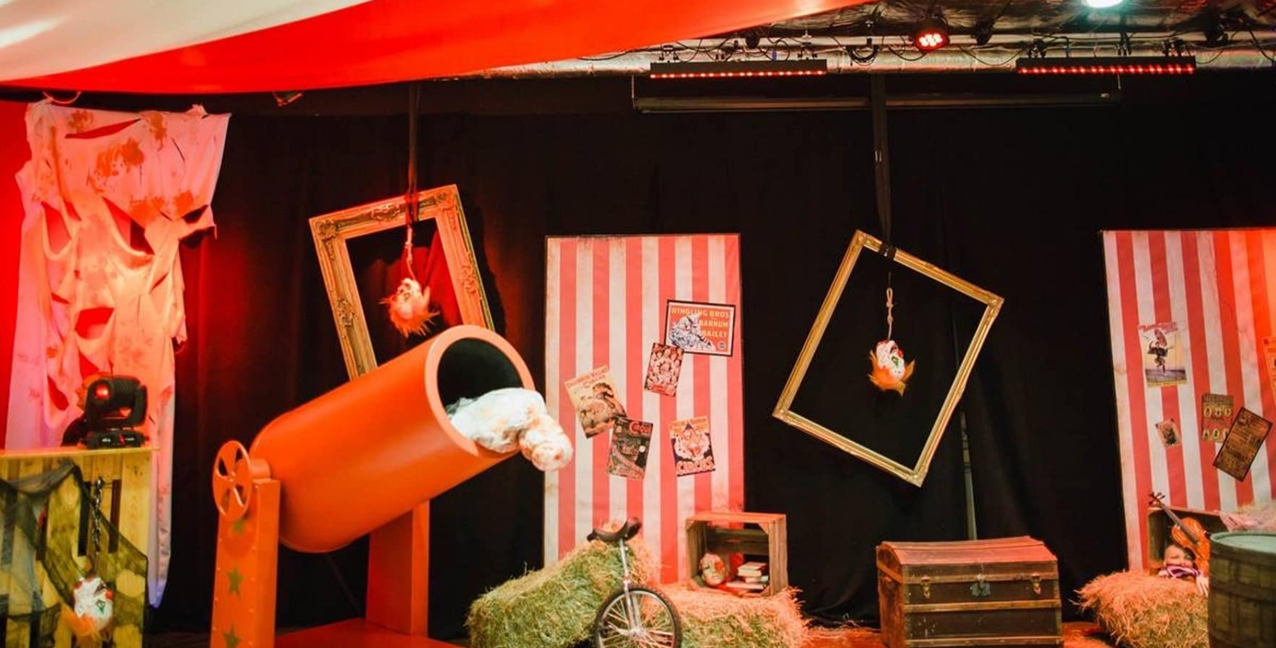 Our giant circus cannons are always a memorable centrepiece and our carousel horse brings back childhood memories. As for clowns? We have the safer (and much less likely to creep up on you) prop version, or we’re happy to supply a real clown if that’s what you’re looking for?