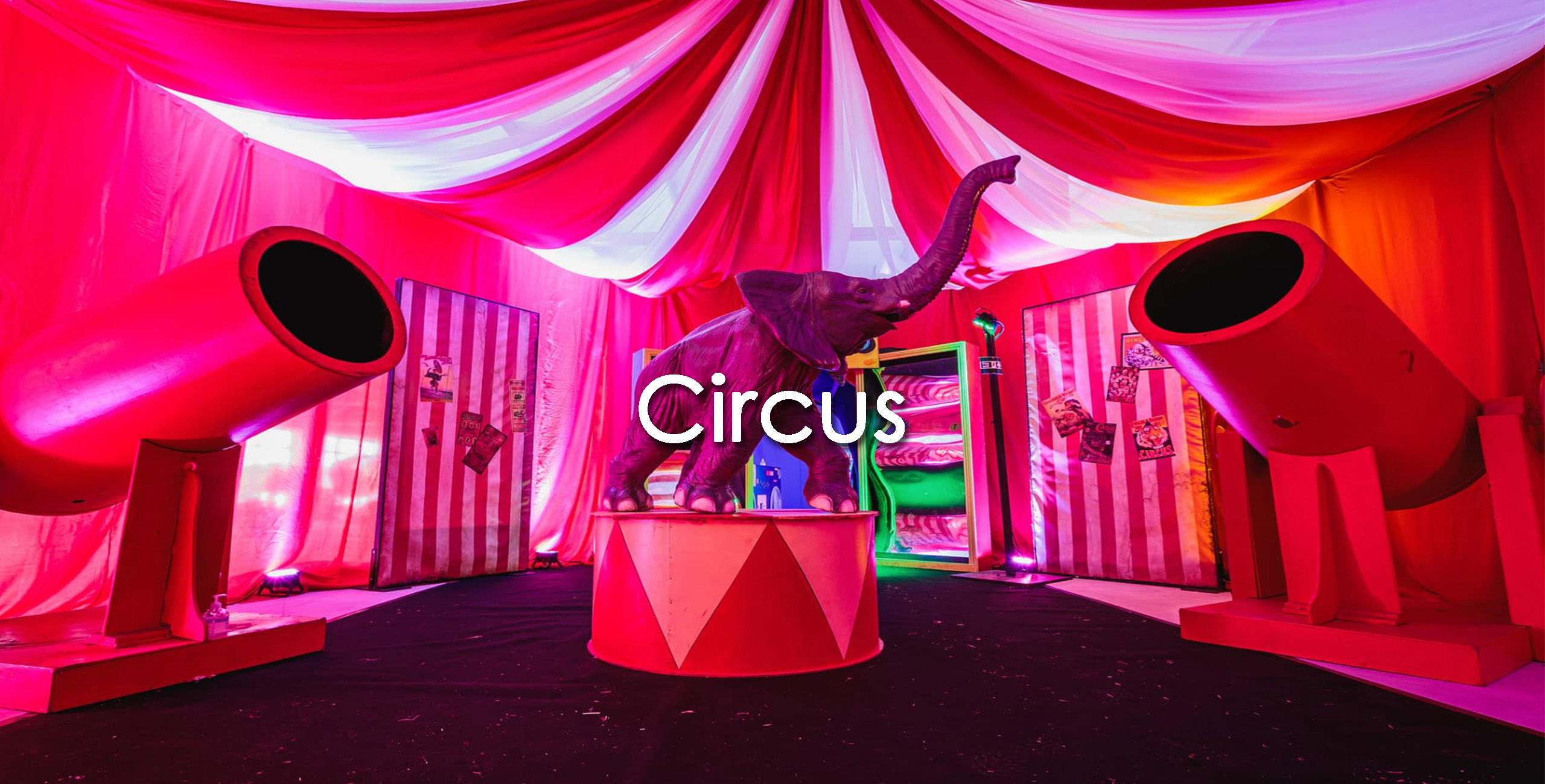 First things first, you can’t have a circus without a circus tent and our big top draping will transform the look of your venue. Our red and white draped entrance is the perfect introduction as your guests step into the arena and a host of treats that lay in store.