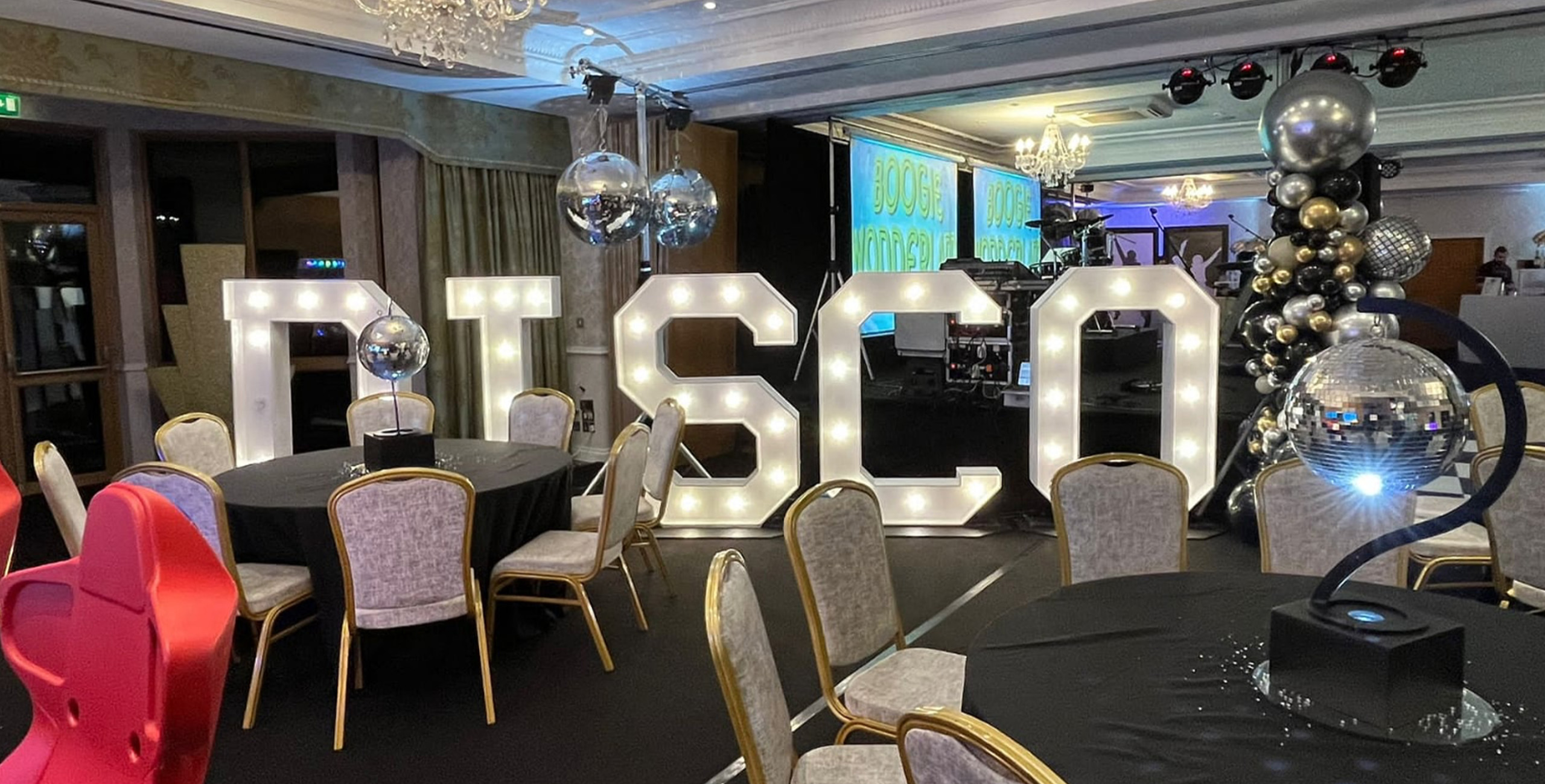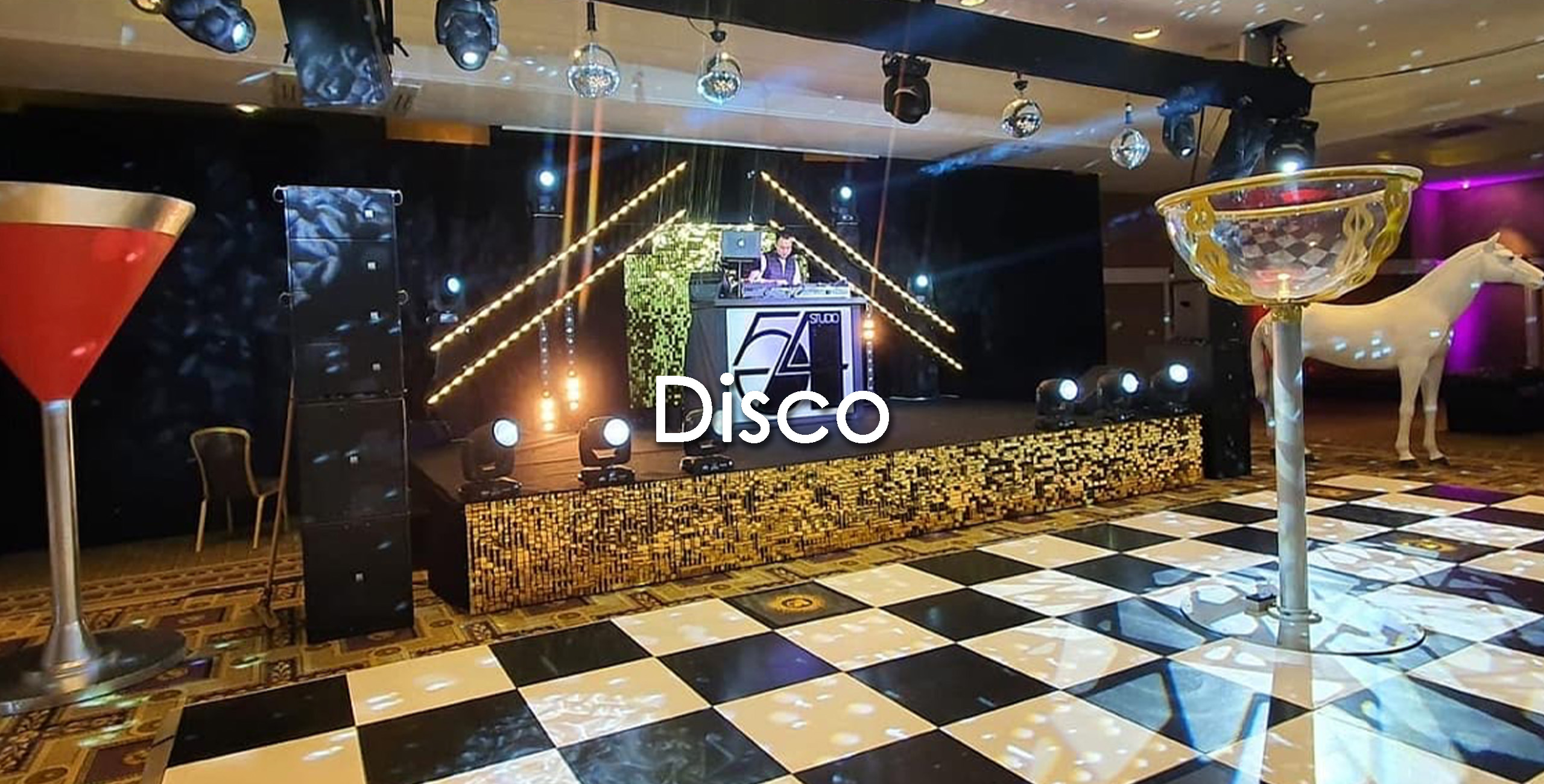 Of course we can’t bring back your Saturday night fever with just a dancefloor. You’ll need lights, and lots of them. We have everything from moving heads, to custom gobos, wash lighting and uplighters. Adding to the affect our stunning mirror balls will bounce the light around your room, giving the feeling of an expensive night club.