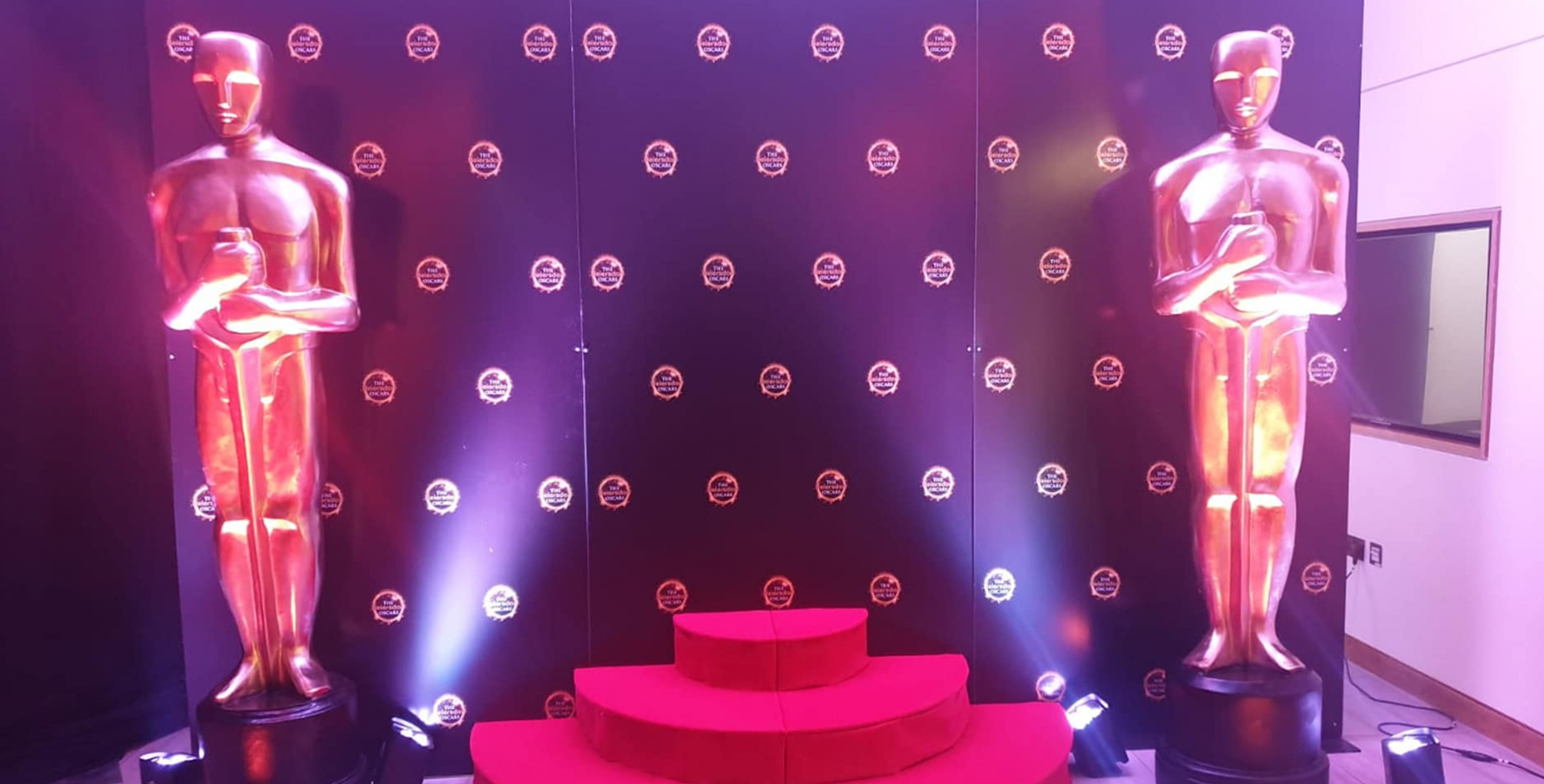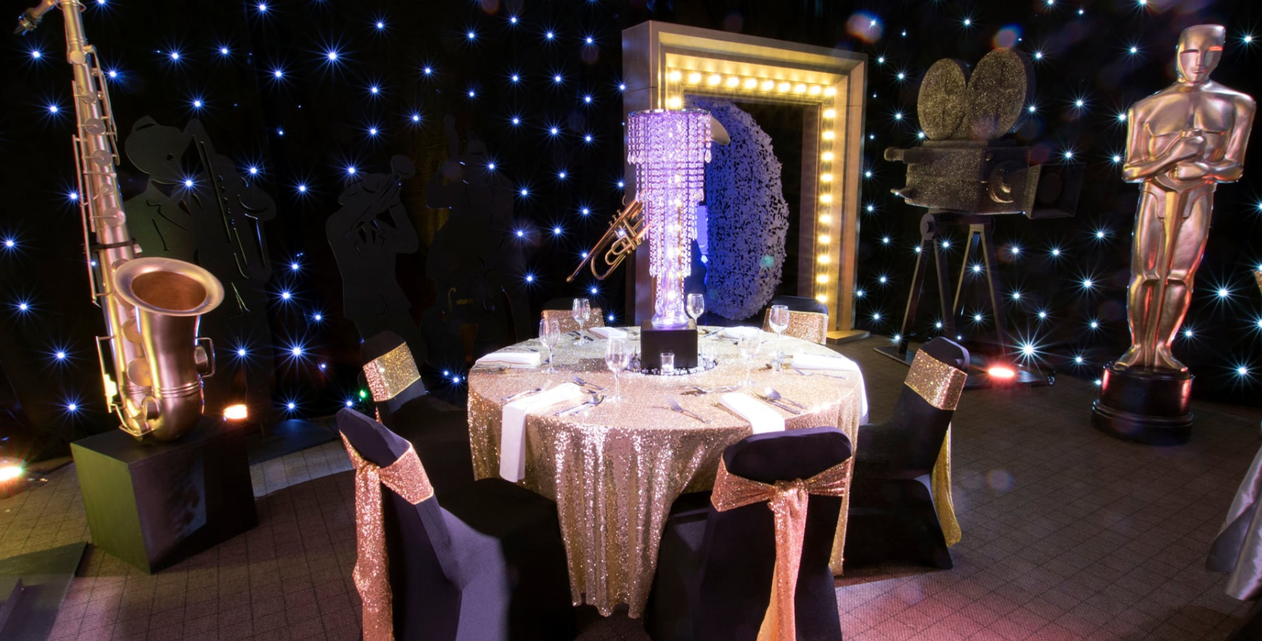 You’ll find tables adorned with film reel or clapperboard table centres, old fashioned movie props in all shapes and sizes and the stars of the show, our 7ft award statue and giant Hollywood letters grabbing everyone’s attention for photo opportunities!