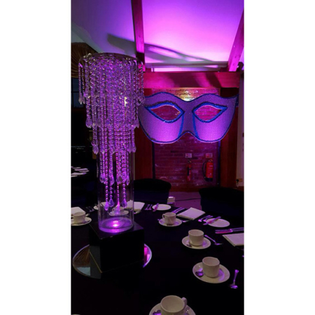 If it’s a modern version of Masquerade that you’re looking for, we can supply that too! Our giant eye mask props are a scene stealing feature and our 3m long masquerade backdrops come in several designs, perfect for breaking up your room. Add our feathered table centres, mood setting up-lights and grand red carpet entrance and you’re all set.