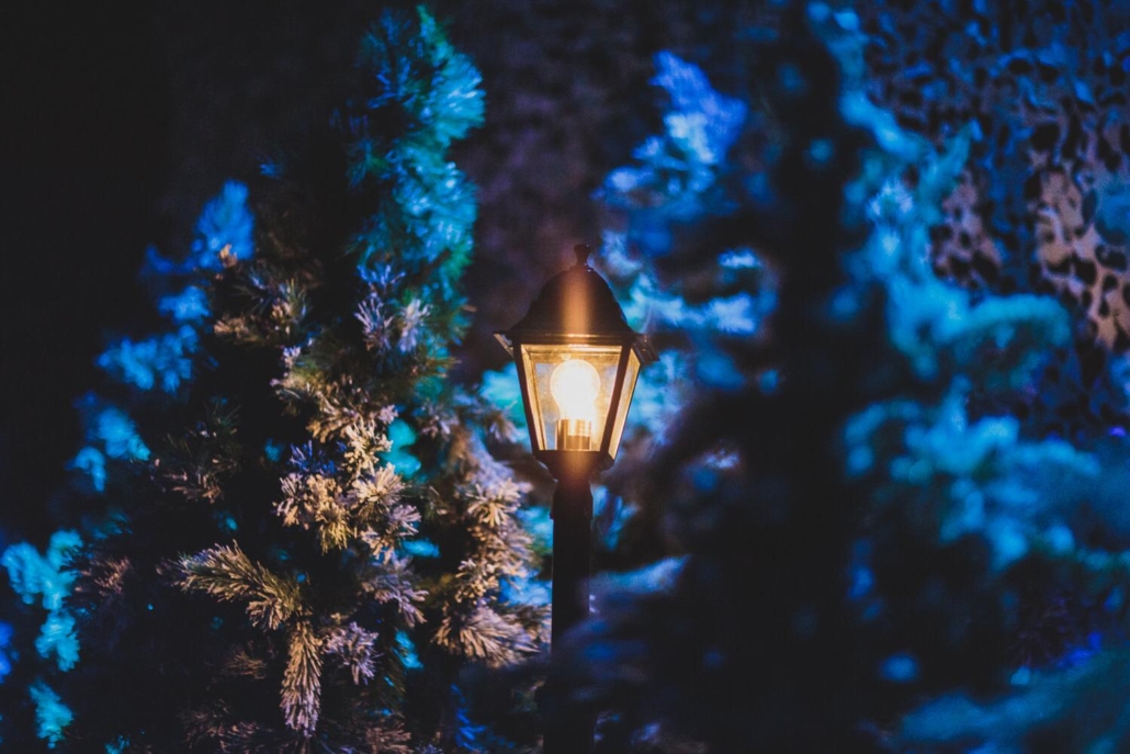 Iconic Narnia lamppost and snowy backdrops