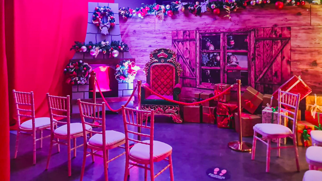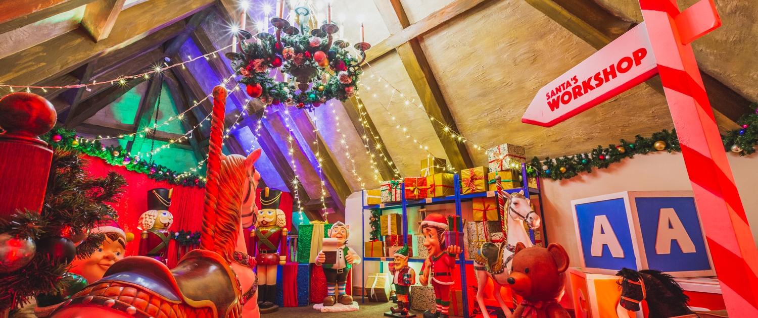 Optional Santa’s grotto, toy workshop and photo op displays for added magic