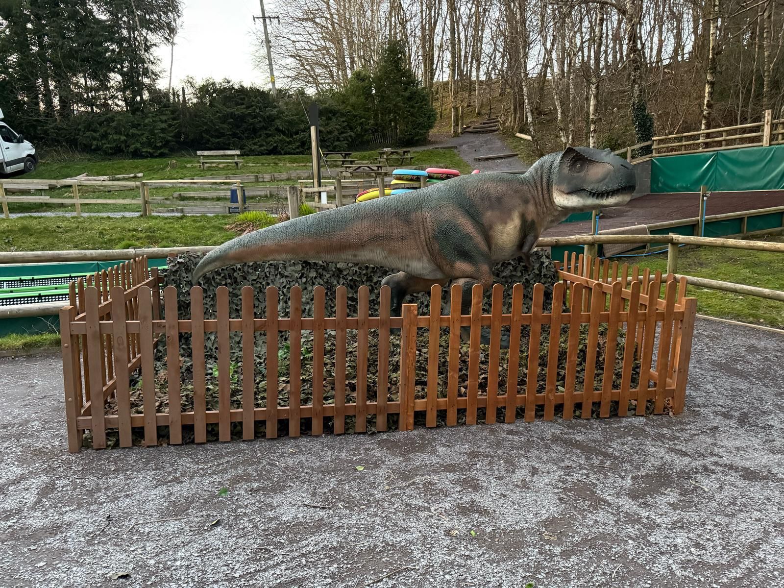 With a £5,000 budget, we focused on creating a high-impact, visually stunning experience that was both cost-effective and engaging. The dinosaur displays were designed to be eye-catching yet simple, ensuring they fit well within the park’s eco-friendly theme. We utilized natural materials like timber for the fencing, which helped maintain the park’s commitment to sustainability while delivering a fun experience for the visitors.